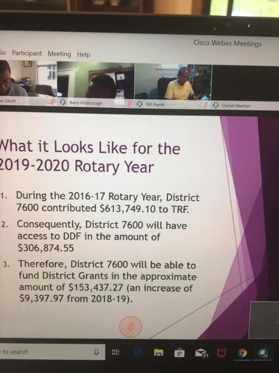 April 20: Grant Management Webinar. Attendance qualifies a club to apply for a Rotary grant. Attendees may attend in person or in the location of their choice by computer. Attendees will need access to wifi/internet connection. This is the final chance for a club to meet this attendance requirement. Registration is free and is on the dacdb.com calendar.